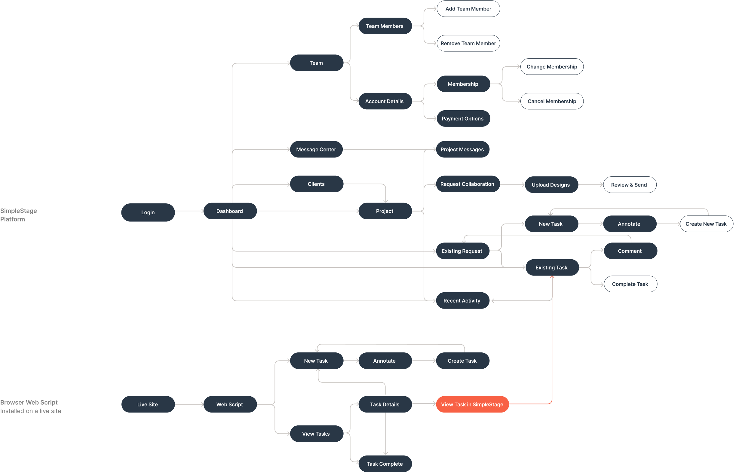 The IA and user flows were established before I was brought onto the project but had not been formally documented. I built a site map to help inform my decision making when designing each dashboard.