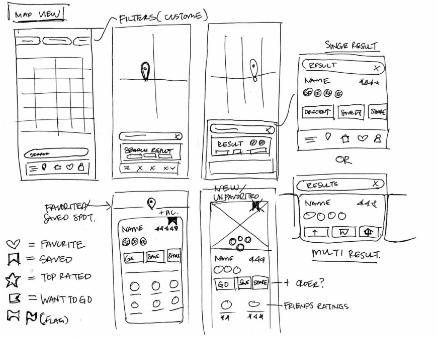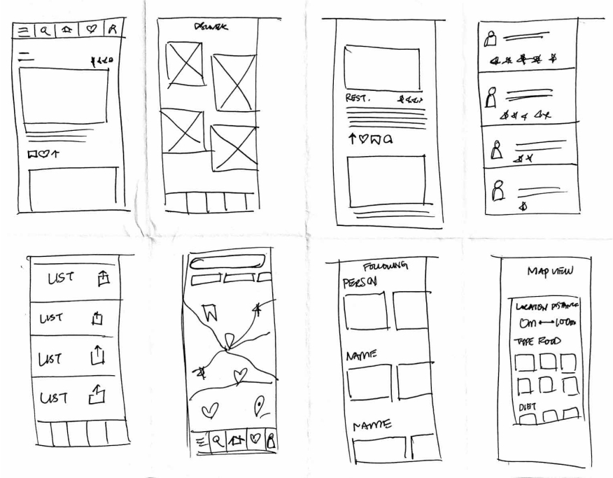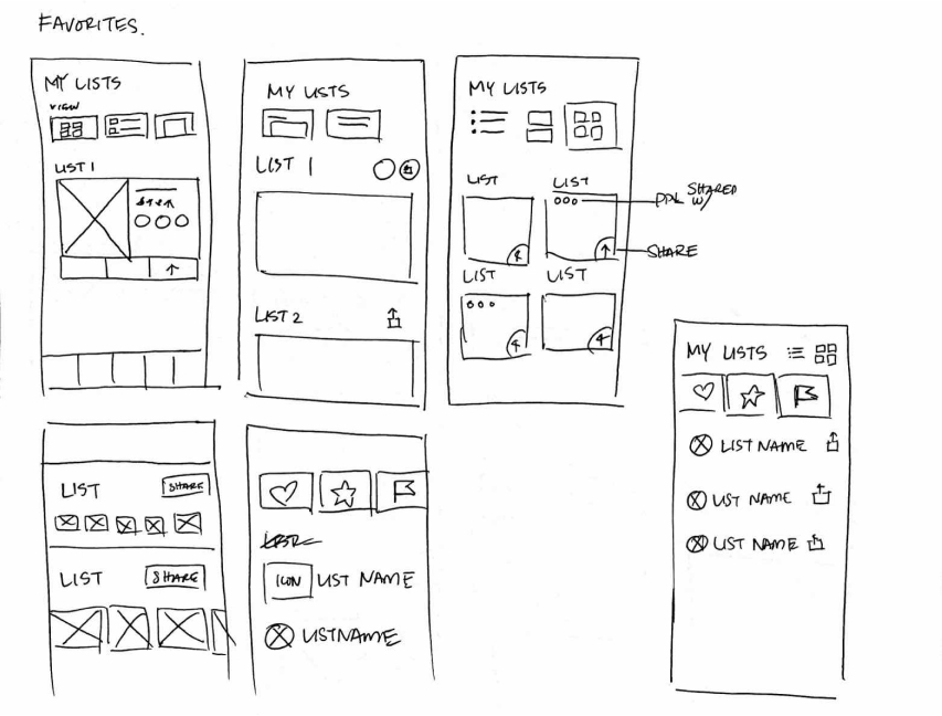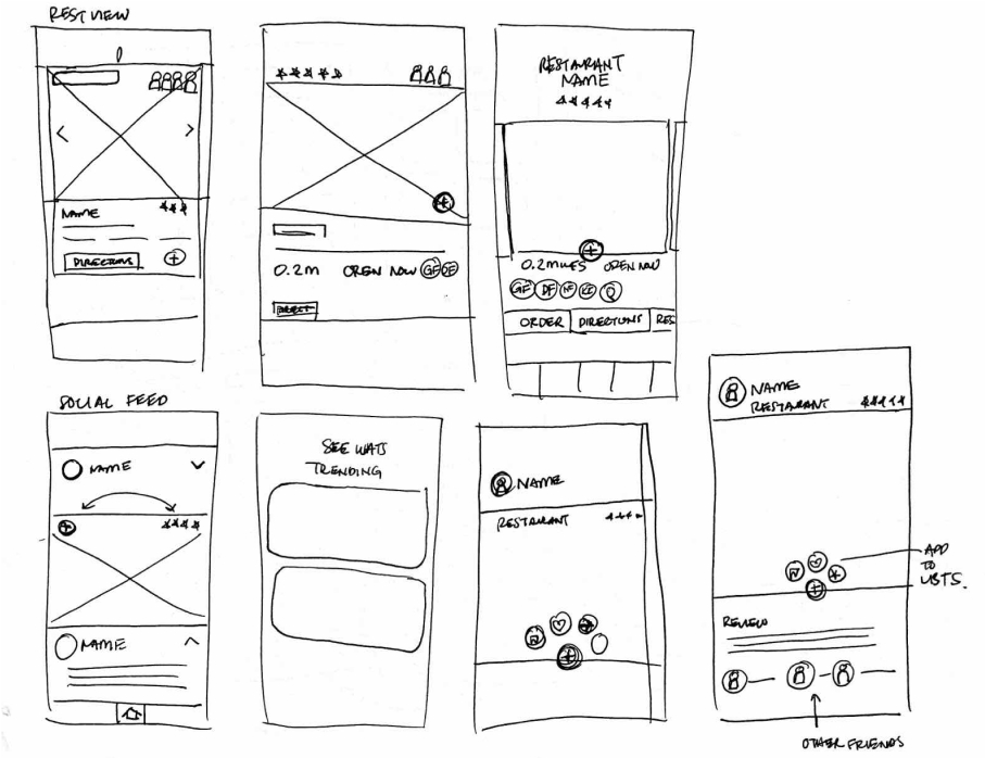 Rough sketches were done to get my initial thoughts on paper and brainstorm new ideas for specific UI elements.