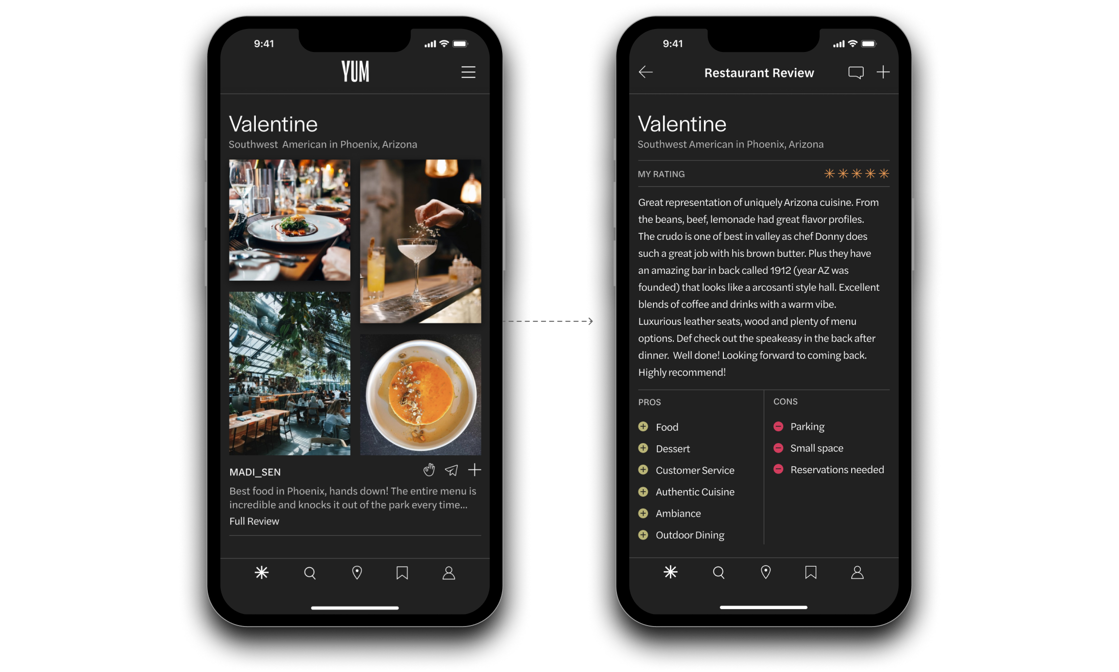 Users can follow friends and read their reviews or write a review and share pictures of their own dining experiences