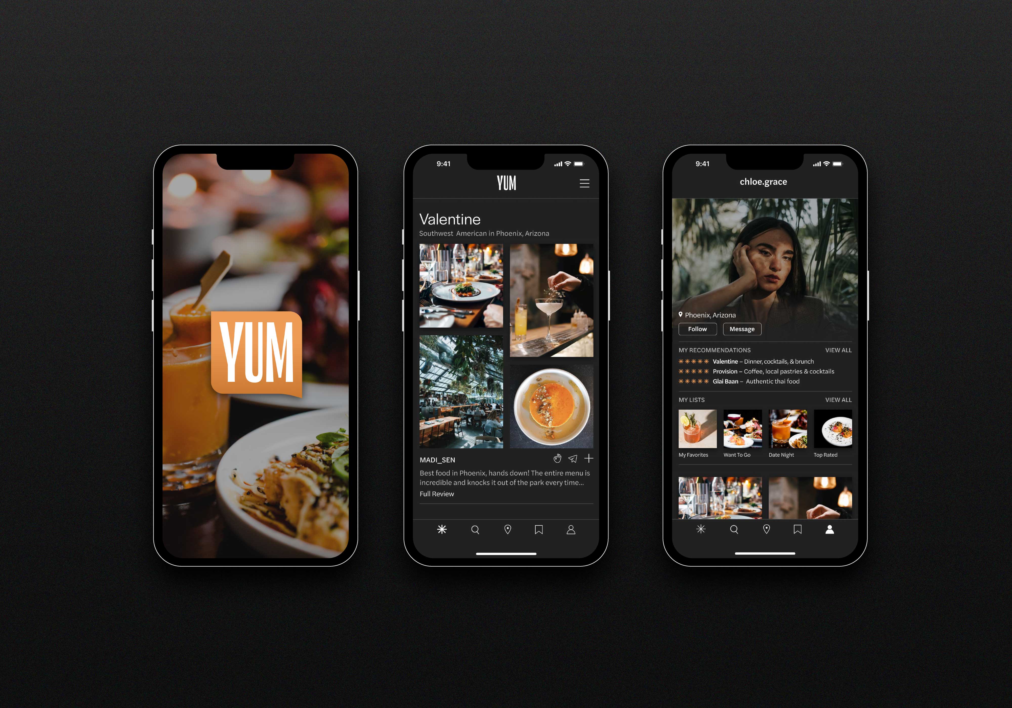 YUM integrates and improves upon the most used features of competing products to solve user pain points. Simplifying the process of finding reputable and desirable restaurant options, saving those new finds for future reference, and sharing them with friends.