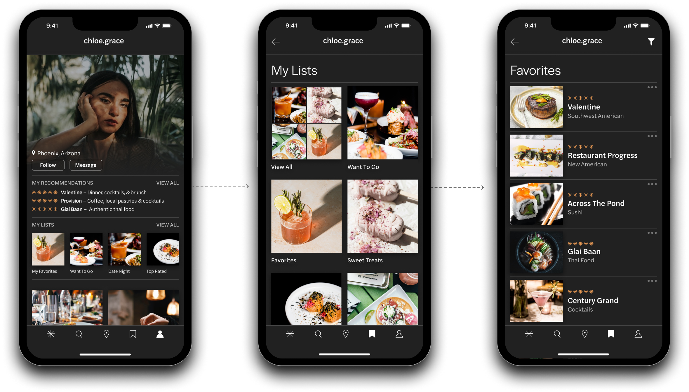 Profiles feature a recommendation section where users can add their top rated spots