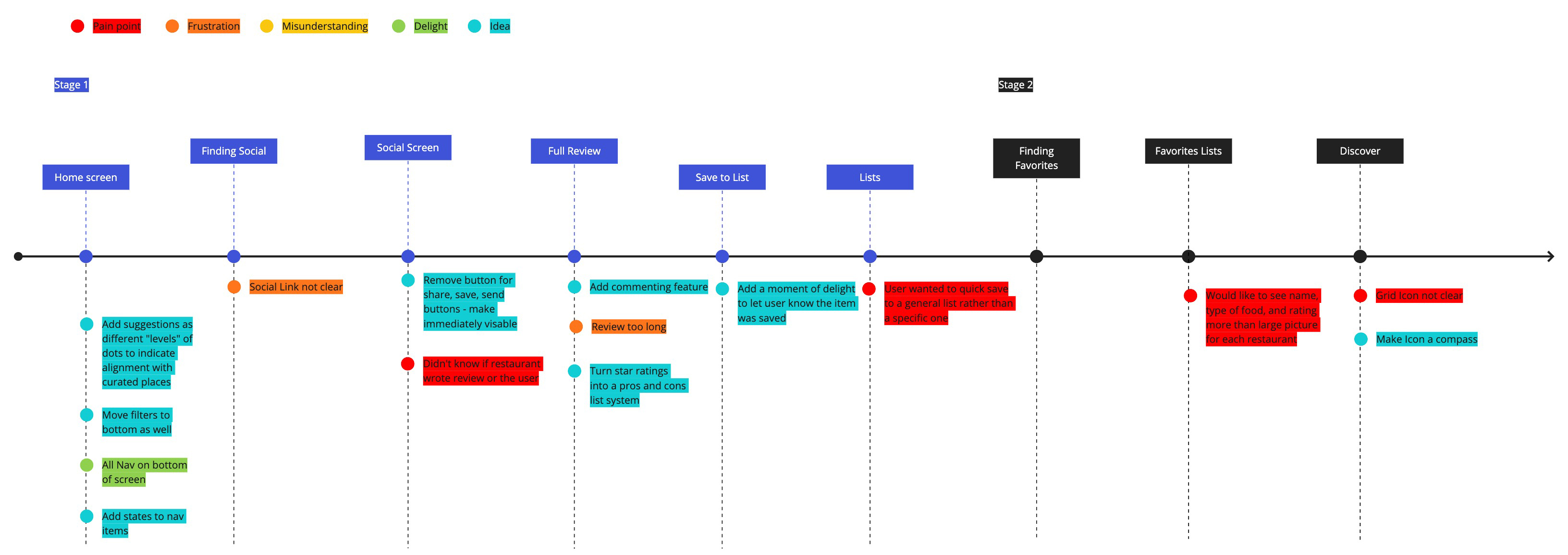 Initial research focused on better understanding user’s needs related to finding and saving restaurants as well as measuring the extent to which these needs are held among their peers.